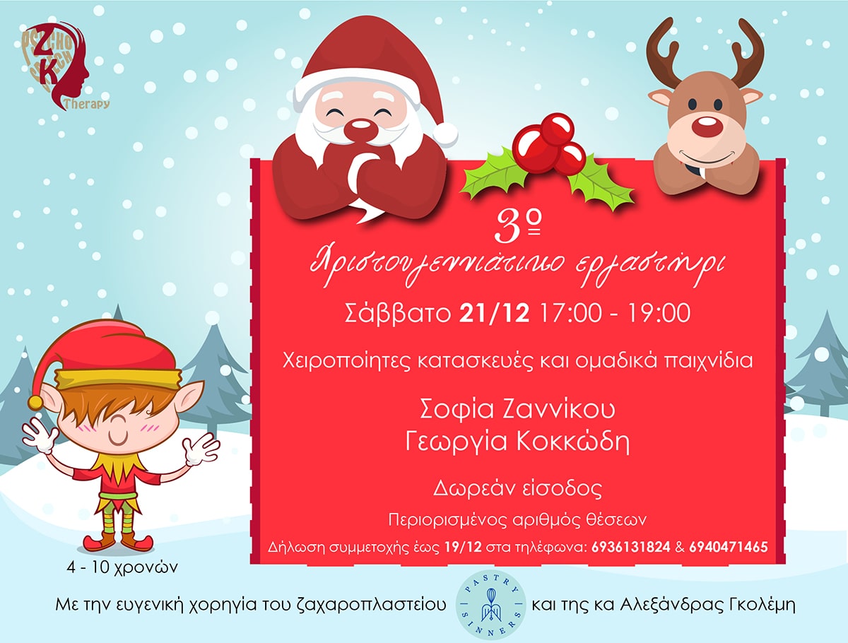 3ο Χριστουγεννιάτικο εργαστήρι 2019 από το κέντρο Συμβουλευτικής-Ψυχοθεραπείας-Λογοθεραπείας Κοκκώδη Γεωργία-Ζαννίκου Σοφία